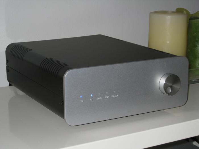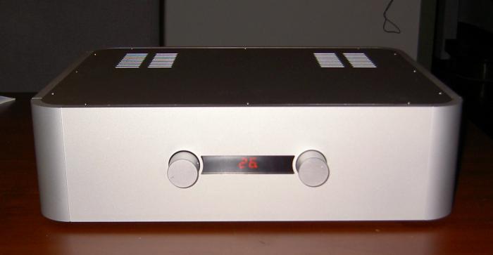 Same chassis with blue LEDs. The taller chassis contains a class-D power-amp from Hypex modules.
